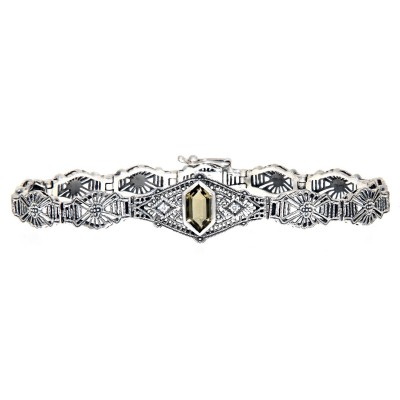 Victorian style Smoky Quartz filigree bracelet in sterling silver- 7 1/4