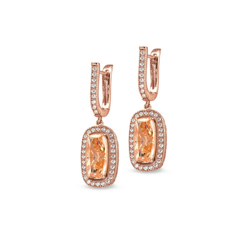 Sterling Silver Micropave Earrings with Light Champagne Colored Stone and Simulated Diamonds