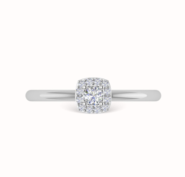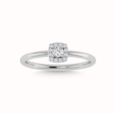 cushion cut shaped halo diamond engagement ring with .30cttw earth mined diamonds set in 14k white gold. This simple elegant ring would be perfect for engagement or promise ring.