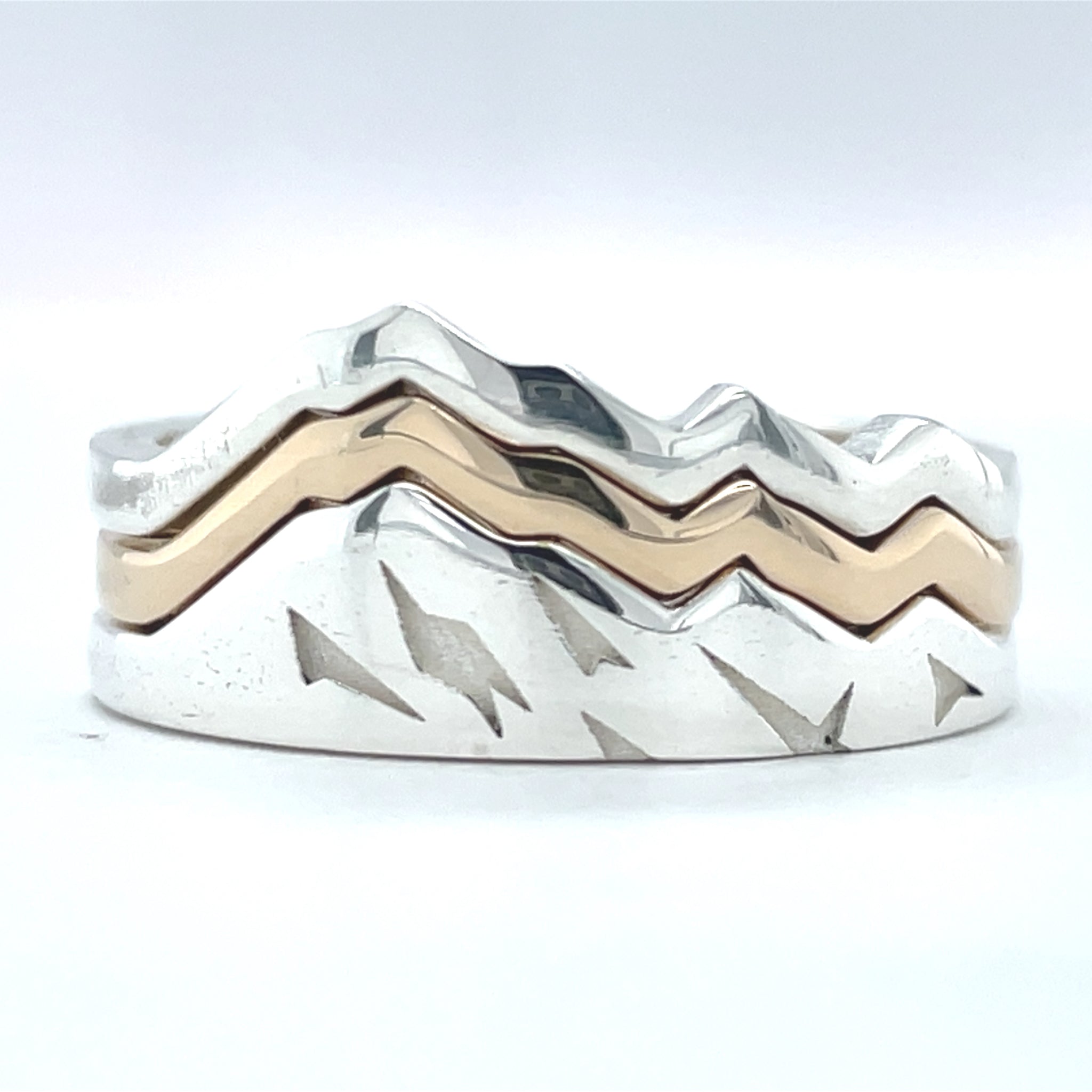 10k white gold King's Peak tracer ring. Like the perfect hike in the Uinta National Forest, you can go it alone, or in a group. This ring is part of the Uinta Mountain stacking set designed exclusively for Seevers Jewelers by Jeff the Jeweler. This listing is for a single tracer ring only so you can choose to add a base, or any other tracer ring and stack to off your unique personality.