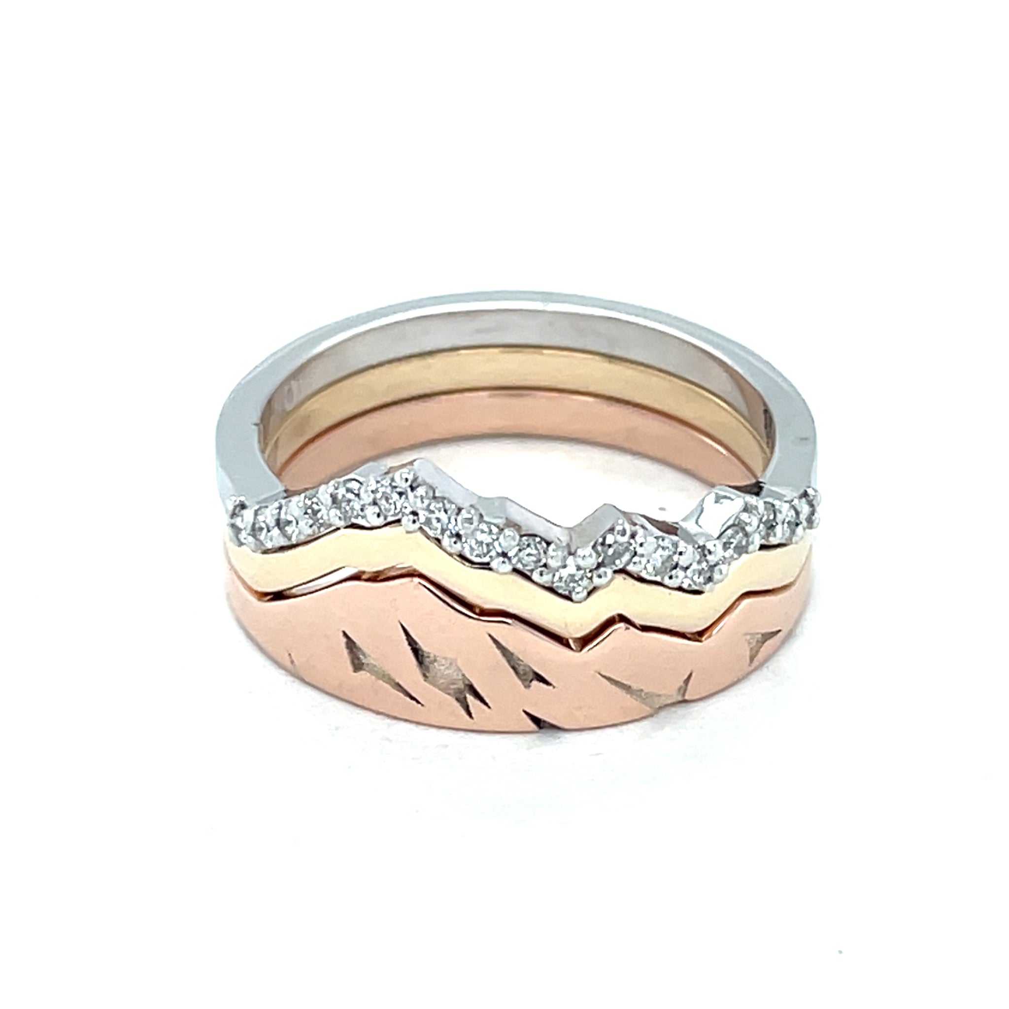 14k yellow gold King's Peak tracer ring. Like the perfect hike in the Uinta National Forest, you can go it alone, or in a group. This ring is part of the Uinta Mountain stacking set designed exclusively for Seevers Jewelers by Jeff the Jeweler. This listing is for a single tracer ring only so you can choose to add a base, or any other tracer ring and stack to off your unique personality.