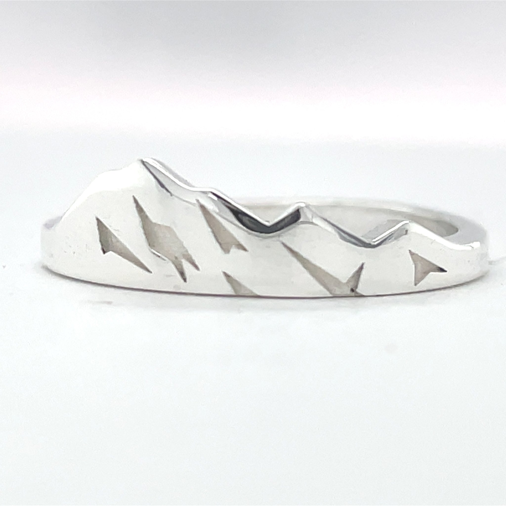 14 karat King's Peak mountain base ring. Like the perfect hike in the Uinta National Forest, a great ring stack begins at the base. This ring is part of the Uinta Mountain stacking set designed exclusively for Seevers Jewelers by Jeff the Jeweler. This listing is for the base ring only so you can choose the tracer stack to show off your unique personality.